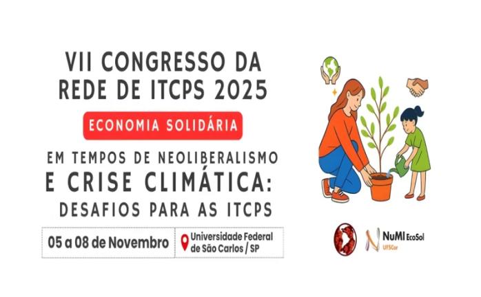 Con el tema "Economía Solidaria en Tiempos de Neoliberalismo y Crisis Climática: Desafíos para las ITCPs", se celebrará del 5 al 8 de noviembre de 2025 en la Universidad Federal de São Carlos (UFSCar). Está organizado por el Centro Multidisciplinario e Integrado de Estudios, Formación e Intervención en Economía Solidaria (NuMI-EcoSol) y la Coordinación de la Red ITCPs, y se inscribe en la Semana Latinoamericana y Caribeña de Economía Social y Solidaria.