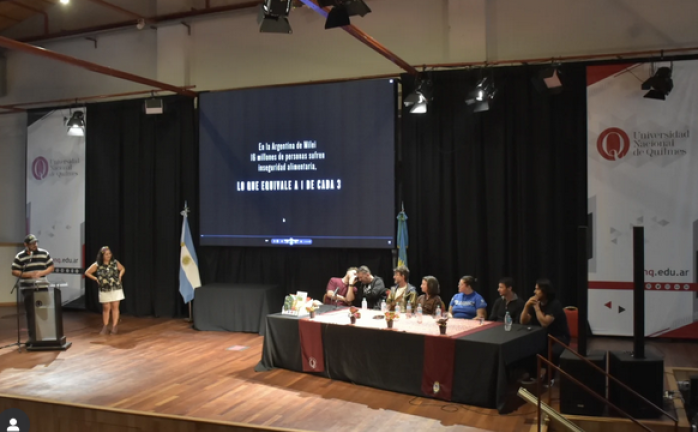 La actividad tuvo lugar en coincidencia con  el día del Graduado UNQ, a partir de la proyecciòn del documental: “Empresa Nacional de Alimentos: Una respuesta Soberana” dirigida por Juan Pablo Lepore, basada en el libro Aportes para la creación de una Empresa Pública de Alimentos de Rafael Klejzer, Patricio Torras, Gabriela Veritier, Hernán Calvo y Diego  Martino Fernández, integrantes del Centro de estudios por la Soberanía Popular "Mariano Moreno" del Movimiento Popular La Dignidad.
